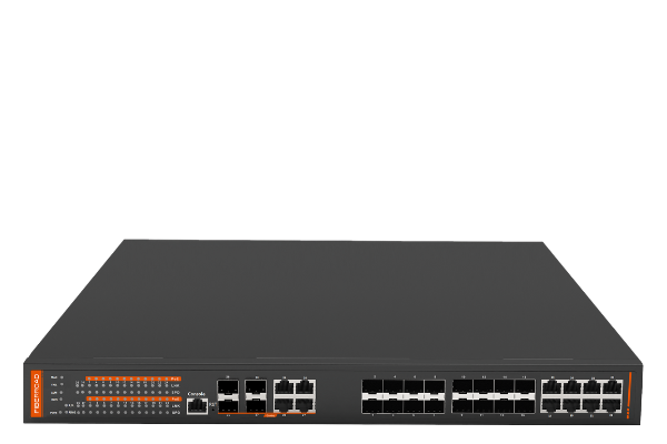 The Fiberroad Layer 2 Managed Ethernet Switch is a robust, full-featured networking solution designed for rack-mount installation in critical infrastructure environments like Toll Control Centres. Combining 24 Gigabit RJ45 ports and 4 Gigabit combo ports (RJ45/SFP), this switch ensures seamless integration of terminal-site industrial switches and media converters, enabling high-speed data aggregation and reliable communication across distributed systems.