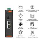 Boost your industrial network’s performance with our Industrial PoE Media Converter with Gigabit SFP, designed to deliver high-speed, stable data transmission over extended distances. This rugged converter seamlessly integrates Power over Ethernet (PoE) and fiber-optic connectivity, allowing you to overcome copper cable limitations while powering remote devices like IP cameras and wireless access points. Its industrial-grade construction ensures reliable operation in harsh environments, while the hot-swappable SFP slot provides flexibility for various fiber types. Whether for factory automation, surveillance systems, or outdoor installations, this converter offers a future-proof solution for expanding your network with superior speed and reliability.