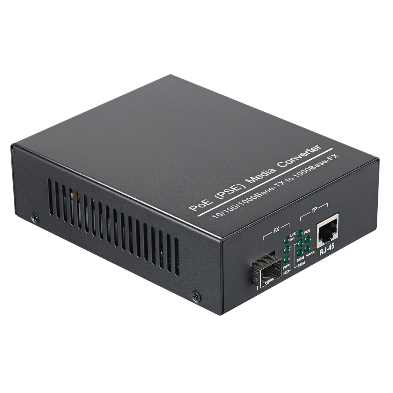 The Gigabit Media Converter PoE built-in a PSE controller, which simultaneously offers PD(Power Device) PoE sensing and PoE negotiation features.
