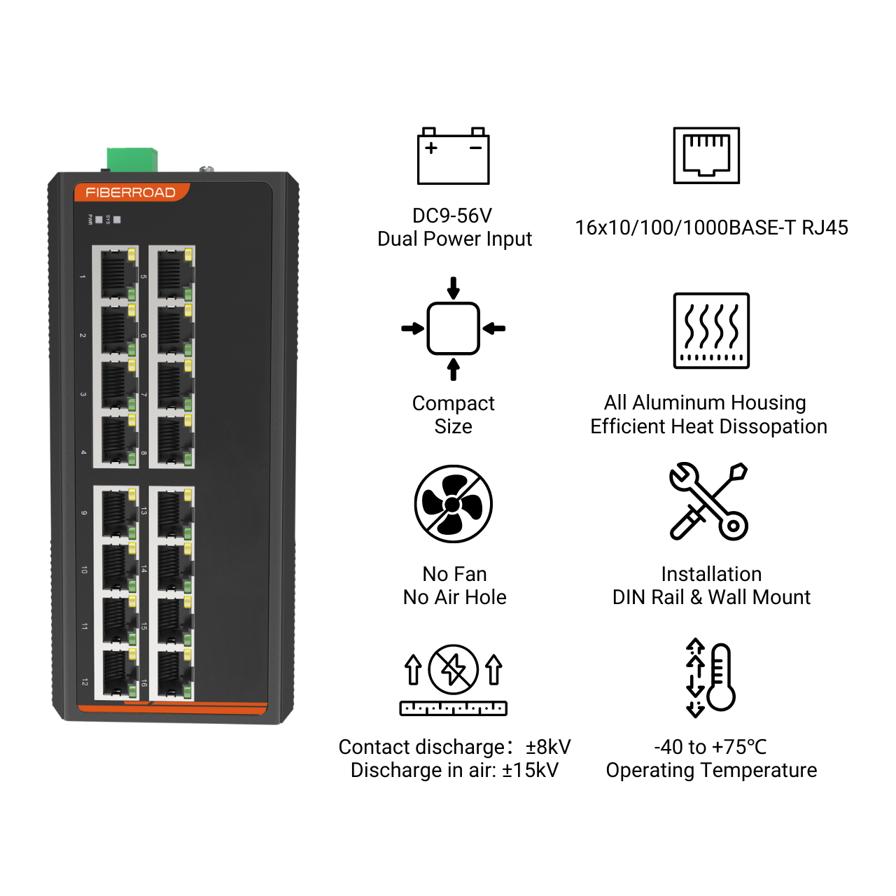 | Copper Ports | 16×10/100/1000BASE-T RJ45 Auto-MDI/MDI-X (Port 1-16) | ||