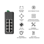 Engineered for extreme environments, this 8-port Ethernet switch delivers reliable performance in temperatures ranging from -20°C to +70°C. Its rugged construction ensures stable operation in harsh industrial settings such as manufacturing facilities, outdoor surveillance systems, or transportation networks, where resistance to thermal stress and environmental fluctuations is critical.