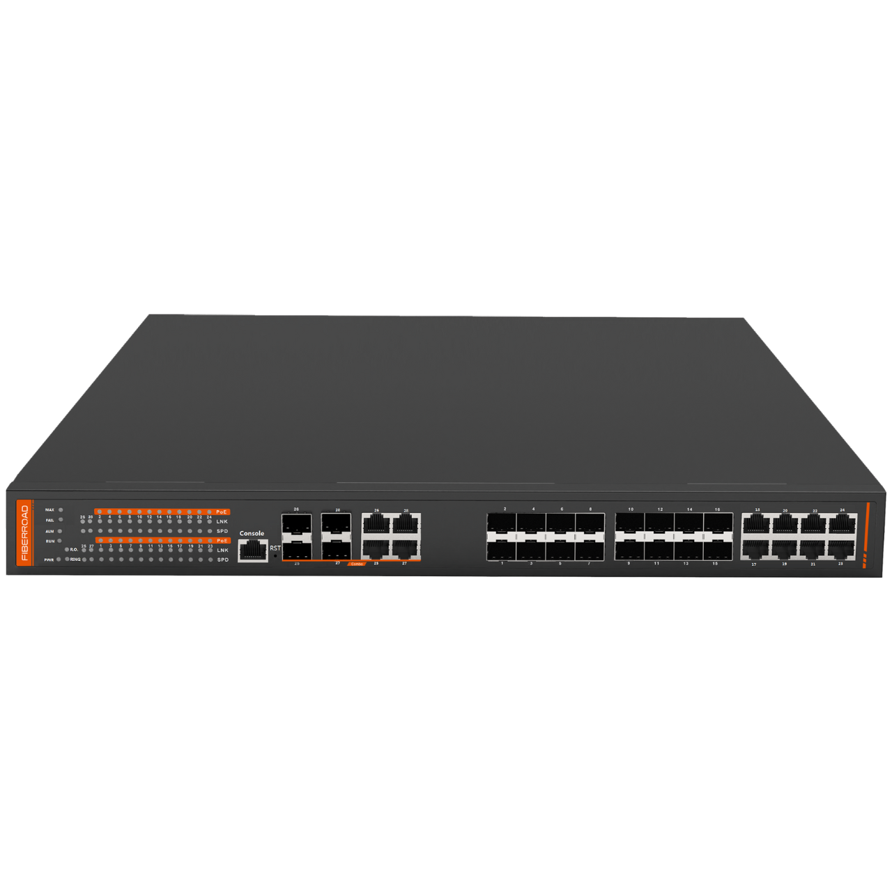 4×100/1000BASE-X SFP Slots (Port 25 -Port 28) / 4×10/100/1000BASE-T RJ45 Combo Port |