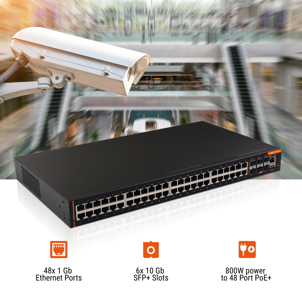 48 Port Managed Gigabit PoE+ Switch with 6x10G SFP+