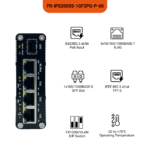 The Fiberroad Industrial PoE Switch delivers high-power connectivity tailored for modern surveillance systems. Supporting the IEEE 802.3bt 90W Power Input, making it ideal for power-hungry devices such as PTZ cameras and advanced access points. The switch features three 10/100/1000M RJ45 ports with dual DC 5-24V power outputs for flexible device integration, along with one 1000M SFP port for long-distance fiber optic transmission to the surveillance control room. Built for industrial environments, it ensures reliable, continuous operation while simplifying cabling and reducing installation costs.