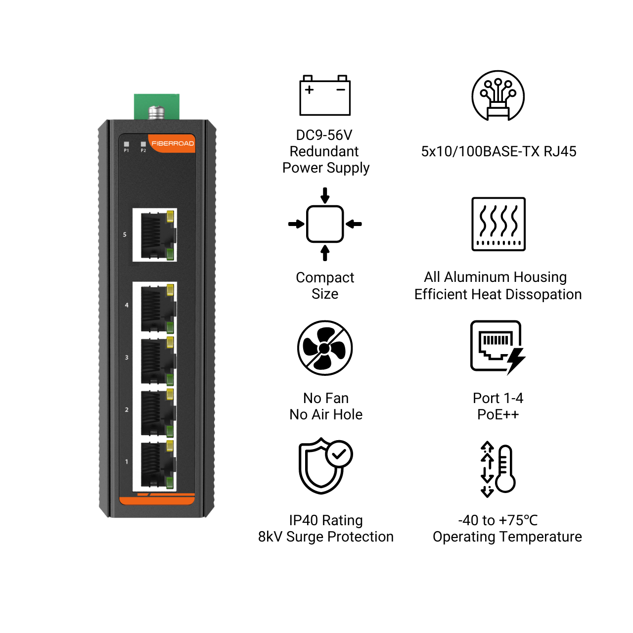 The 5 Port Industrial PoE Switch offers an impressive range of features that make it a reliable and efficient solution for powering Ethernet-enabled devices. With prowess of up to 90W of power, this switch adheres to the industry-standard 802.3af/at/bt PoE++ protocol, ensuring compatibility with a wide range of devices. The true beauty lies in its Gigabit Ethernet port, which guarantees faster and more dependable connections for all connected devices. Setting up this switch is hassle-free; merely follow a few simple steps, and you’re good to go – no tedious software setups or configurations required. Whether it’s powering security cameras, wireless access points, or other network equipment, the 5 Port Industrial PoE Switch delivers seamless performance while providing peace of mind knowing that your devices are powered reliably and efficiently.